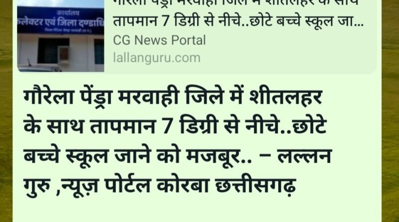 Read MoreLallanguru.com की खबर का असर: गौरेला पेंड्रा मरवाही जिले में 7 जनवरी तक स्कूलों में छुट्टी, जारी हुआ आदेश.. गौरेला