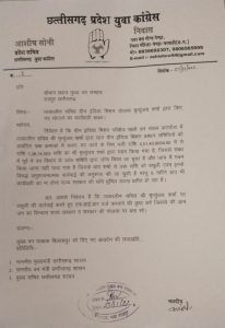 युवा कांग्रेस प्रदेश सचिव अशीष सोनी ने बुधवार को प्रधान मुख्य वन संरक्षक रायपुर को कटघोरा वनमण्डल अंतर्गत ग्रीन इंडिया मिशन योजना में हुए 1 करोड़ 38 लाख रूपए के घोटाले के संबंध मे कड़ी कार्यवाही मांग की गई थी। जिस पर आज कार्यवाही करते हुए प्रधान मुख्य वन संरक्षक संजय शुक्ला ने भ्रष्ट रेंजर मृत्युंजय शर्मा को निलंबित कर दिया है।