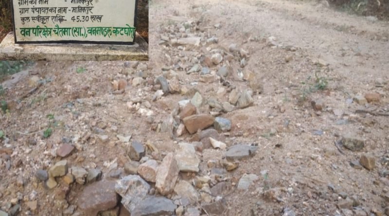 कोरबा/कटघोरा-चैतमा:-जंगल मे मोर नाचा, किसने देखा..? यह कहावत वनमंडल कटघोरा में सटीक बैठता है, जहां पूर्व के तथा वर्तमान वनमंडलाधिकारी राज में अधीनस्थ अधिकारी एवं कर्मचारी बेलगाम होकर मनमाने काम कर रहे है और शासन का खजाना वन सड़कों, तालाब, डबरी सहित अन्य निर्माण के नाम पर फर्जी बिल बाउचर के सहारे खाली कर अपना झोली भर रहे है। परिणामस्वरूप सरकारी धन का दुरुपयोग होने के साथ- साथ सरकार की छवि भी खराब होने के रूप में सामने आने लगा है। चैतमा परिक्षेत्र में भी डब्ल्यूबीएम सड़क का निर्माण गत 2020- 21 में कराया गया, जिसमे क्रेशर गिट्टी के स्थान पर जंगल के ही बोल्डर और मिट्टी- मुरुम का उपयोग कर 45 लाख 30 हजार के वन सड़क का निर्माण करा लिया गया।