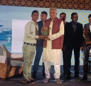 युवा पत्रकार- प्रशांत डेनियल मुख्यमंत्री भुपेश बघेल के हाथों हुए सम्मानित..