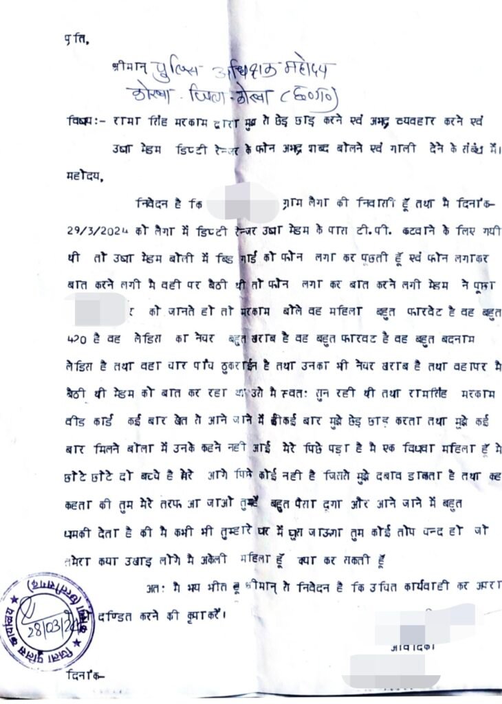 शिकायत के मुताबिक बीट गार्ड ने महिला डिप्टी रेंजर से फोन पर बात करते हुए उक्त पीड़ित आदिवासी महिला के लिए अनेक गलत और आपत्तिजनक शब्दों का उपयोग किया। आदिवासी बेवा महिला के साथ उसने छेड़छाड़ करने का भी प्रयास किया है और अनर्गल प्रस्ताव भी कई बार रखे हैं। परेशान पीड़िता ने हिम्मत कर आखिरकार शिकायत की, लेकिन न्याय आज भी लंबित है।