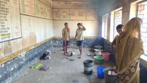 वही अगर पुराने और जर्जर स्कूल की भवन की बात करें तो भवन पूरी तह जर्जर हो चुका है इसलिए बच्चों की पढाई की वैकल्पिक व्यवस्था की गई है। स्कूल भवन के एक हिस्से में अभी मध्यान्ह भोजन बनाया जा रहा है जो अभी कुछ महीनों ही हुए हैं। रसोइयों ने बताया कि पहले मध्यान्ह भोजन के लिए एक निजी मकान का उपयोग किया जा रहा था लेकिन स्कूल भवन खाली होने से अब किचन वहीं शिफ्ट कर दिया गया है। रसोइयों का कहना है कि जर्जर स्कूल की स्थिति के कारण डर के साये में वे खाना बनाकर बच्चों को खिलाते हैं।