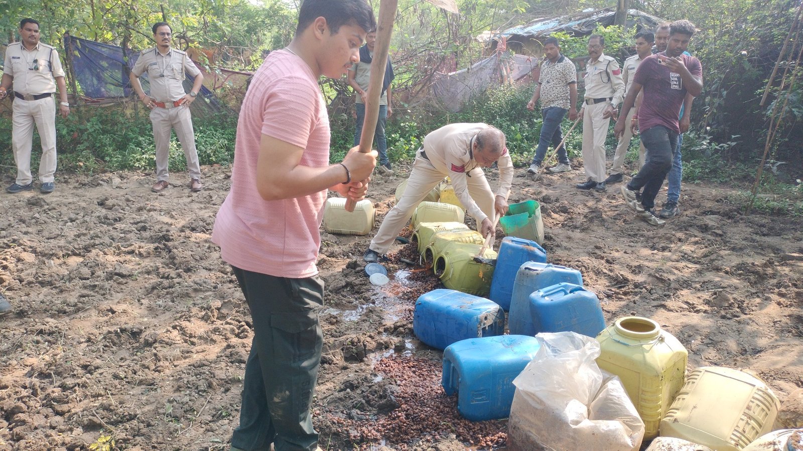 बतादें की कटघोरा थाना क्षेत्र के ग्राम पंचायत जेन्जरा या आश्रित ग्राम पतरापाली अवैध महुआ शराब बनाने व बेचने के लिए प्रसिद्ध है। इस स्थान पर पूर्व में भी आबकारी विभाग द्वारा कार्यवाही करते हुए 8 लोगों को गिरफ्तार किया गया था। लेकिन इसके बावजूद इस गाँव के लोग कच्ची महुआ शराब बनाने से बाज़ नही आ रहे है। जिसे लेकर जिला पुलिस अधीक्षक सिद्धार्थ तिवारी के निर्देश पर कटघोरा अतिरिक्त पुलिस अधीक्षक नेहा वर्मा , एसडीओपी कटघोरा पंकज ठाकुर के मार्गदर्शन में कटघोरा थाना प्रभारी धर्मनारायण तिवारी व उनकी पुलिस टीम तथा जिला आबकारी विभाग की संयुक्त टीम ने पतरापाली गांव में सुबह 7 बजे छापामार कार्यवाही की।