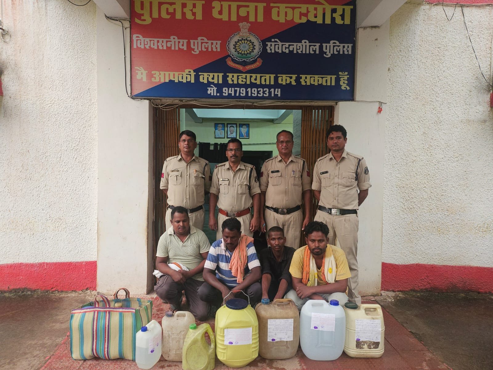 ktg news : जुराली के गदेलीपारा व पुछापारा में नशे के सौदागरों के यहां पुलिस की दबिश.. 121 लीटर कच्ची महुआ शराब व 1 मोटर सायकिल किया जप्त.. 4 आरोपी चढ़े पुलिस के हत्थे.