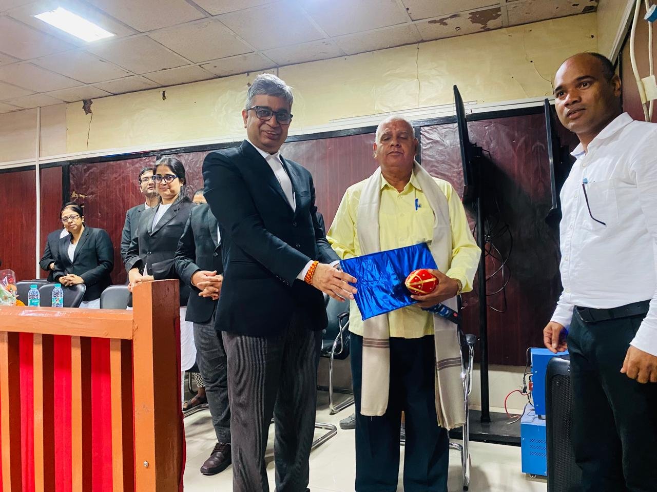 कोरबा/कटघोरा 30 सितम्बर 2024 : जिला एवं सत्र न्यायालय कोरबा में पदस्थ कर्मचारी श्री प्रमोद कुमार पाण्डेय जी अर्धवार्षिकीय आयु पूर्ण करने के उपरांत सेवानिवृत हुए फल स्वरुप जिला न्यायिक कर्मचारी संघ के तत्वाधान में विदाई सह सम्मान कार्यक्रम का आयोजन जिला न्यायालय परिसर कोरबा के वीडियो कॉन्फ्रेंसिंग कक्ष में की गई उक्त अवसर पर माननीय श्री सत्यम कुमार साहू जी प्रधान जिला एवं न्यायाधीश कोरबा, श्री जयदीप गर्ग जी विशेष न्यायाधीश एक्ट कोरबा, श्रीमती गरिमा शर्मा जी, डॉ ममता भोजवानी जी, श्री अश्वनी कुमार चतुर्वेदी जी ,श्रीमती ज्योति अग्रवाल जी, जिला अपर सत्र न्यायाधीश कोरबा सुश्री सीमा प्रताप चंद्र जी मजिस्ट्रेट कोरबा श्रीमती प्रतीक्षा अग्रवाल जी, व्यवहार न्यायाधीश वरिष्ठ श्रेणी कोरबा कुमारी डिंपल सचिव जिला विधिक सेवा प्राधिकरण कोरबा ,श्री मंजीत जांगड़े जी, श्रीमती रिचा यादव जी व्यवहार न्यायाधीश कनिष्ठ श्रेणी कोरबा, श्री दिनेश कुमार टैगोर अध्यक्ष न्याय कर्मचारी संघ कोरबा, श्री अनिल कुमार पटेल, श्री अरविंद कुमार मिश्रा, श्री देव सिंह नायक, नजीर श्री प्रवीण बनर्जी की गरिमा में उपस्थिति में विदाई सह सम्मान समारोह आयोजन किया गया माननीय प्रधान जिला एवं सत्र न्यायाधीश महोदय जी द्वारा सेवाड़ा नृत्य कर्मचारियों को सफलतापूर्वक अर्धवार्षिक की आयु पूर्ण करने पर बधाई देते हुए कहा कि आगे अपने स्वास्थ्य एवं पारिवारिक दायित्वों का निर्वहन करें पेंशन व अन्य देव भक्तों का भुगतान शीघ्रता से भुगतान करने हेतु संबंधित लिपिक को निर्देशित किया गया