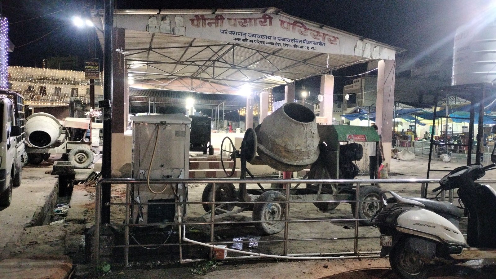 कोरबा/कटघोरा 26 अक्टूबर 2024 : कटघोरा नगर पालिका परिषद की उदासीनता के चलते वार्ड क्रमांक 4 बाज़ार मोहल्ला में बने पौनी पसारी में बने चबूतरों में अब सब्जी व्यापारियों की जगह सिविल कंस्ट्रक्सन में उपयोग होने वाली मिक्चर मशीनों व जनरेटर ने अपनी जगह बना ली है। पौनी पसारी में बने चबूतरों के चारो तरफ केवल मिक्चर मशीन ही नज़र आ रहा है। यह मिक्चर मशीन किस ठेकेदार के है यह तो पता नही लेकिन इनके द्वारा पौनी पसारी में मिक्चर मशीनों को बेधड़क खड़ा कर दिया गया है। इस ओर नगर पालिका कोई सख्ती नही दिखा रहा है।