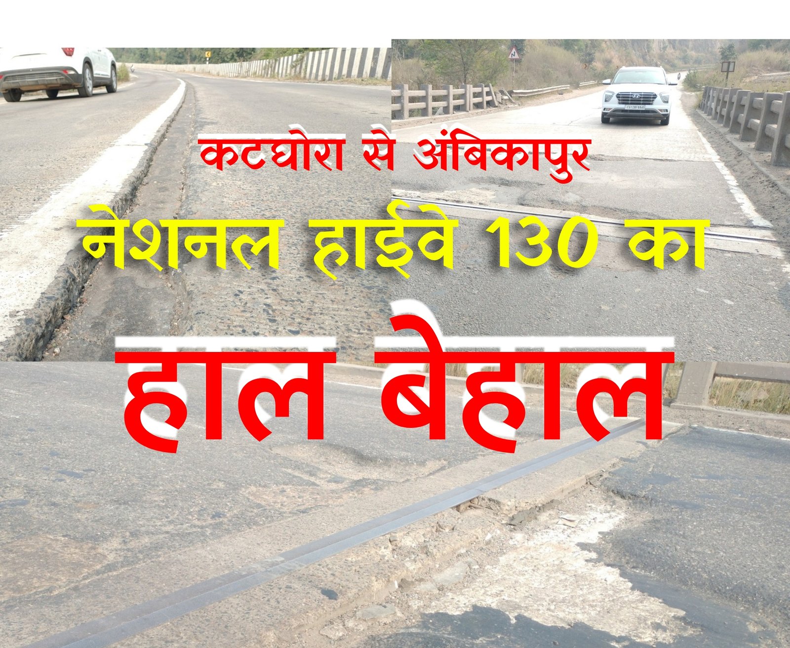 कटघोरा से अम्बिकापुर नेशनल 130 में बरपाली से पोंडी उपरोड़ा के बीच की सड़क एक तरफ धीरे धीरे धंस रही है इसकी वजह से सड़क बीचोबीच बड़ी दरार आ गई है जिसकी वजह से कभी भी कोई बड़ा हादसा हो सकता है। और अक्सर इन दरारों में वाहन का चक्का आने से दुर्घटनाएं होती ही रहती है। यही हाल बरौदखार स गुरसियां के बीच तान नदी पर बने पुल की सड़क का है जहां सड़क उखड़ जाने से बड़े बड़े गड्ढों में सड़क तब्दील हो गई है जिससे वाहानों को भारी दिक्कतों का सामना करना पड़ता है। पुल पर लगा लोहे का सपोर्टर भी सड़क से बाहर आ गया है जोकि कभी भी बड़ी दुर्घटना का कारण बन सकता है।
