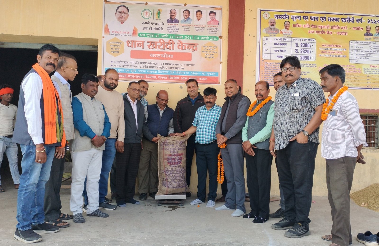 ktg news : धान उपार्जन केंद्र कटघोरा में धान खरीदी का हुआ शुभारंभ.. नपाप अध्यक्ष व तहसीलदार हुए शामिल.. 4 किसानों ने पहले दिन कुल 260.80 क्विंटल धान बेचा.