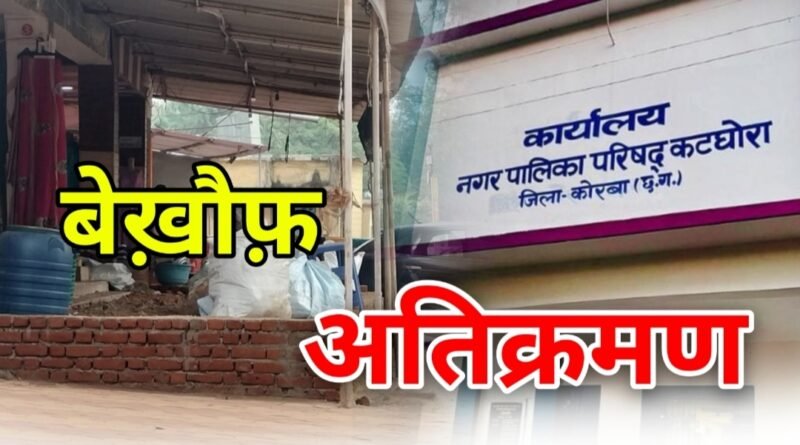 बतादें कि कटघोरा नगर पालिका क्षेत्र में चौराहे के पास प्रशासन द्वारा अतिक्रमणकारियों पर कार्यवाही तो की गई लेकिन स्थिति फिर जस के तस बन गई है। स्टेडियम काम्प्लेक्स में कपड़ा व्यवसायी प्रदीप अग्रवाल द्वारा जिस तरह से दुकान के बाहर लंबे चौड़े चबूतरे का निर्माण किया जाना वो भी गैरकानूनी तौर पर बनाना सीधे सीधे प्रशासन को चुनौती देने की कोशिश की जा रही है। आज इस काम्प्लेक्स में इस तरह से बेख़ौफ़ दुकान के बाहर चबूतरे का निर्माण करने से निश्चित तौर पर आने वाले समय मे अन्य दुकानदार भी अतिक्रमण बेख़ौफ अपनी दुकानों के सामने अतिक्रमण करने का हौसला बढ़ेगा।