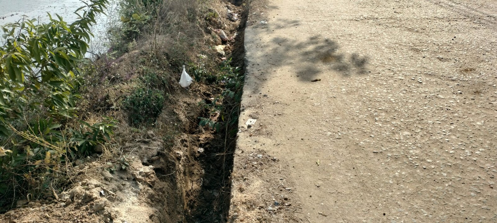 कोरबा/कटघोरा 31 दिसम्बर 2024 : नज़र हटी, दर्घटना घटी.. कटघोरा नगर पालिका क्षेत्र के वार्ड क्रमांक 4 सरगबन्द तालाब किनारे जोकि यह रास्ता स्कूली बच्चों व आम नागरिकों के आने जाने का रास्ता है और यहां रास्ते और तालाब किनारे महीनों से नाली खोद दी गई है चूंकि यह नाली क्यों खोदी गई पता नही, लेकिन यह नाली काफी गहरी होने तथा तालाब से लगा होने के कारण यह काफी खतरनाक साबित हो सकता है। क्योंकि इस रास्ते से स्कूली बच्चे मेला ग्राउंड स्थित स्कूलों में आना जाना करते है। पालक अपने बच्चों को मोटर सायकिल से स्कूल छोड़ने जाते है। लेकिन सड़क किनारे नाली खोद दिए जाने से और इस मार्ग पर निर्माण कार्य होने से सड़क पर रेत भी बिखरी रहती है जिसकी वजह से एक बड़ी दुर्घटना को यह नाली आमंत्रण दे रही है।