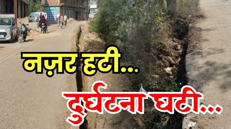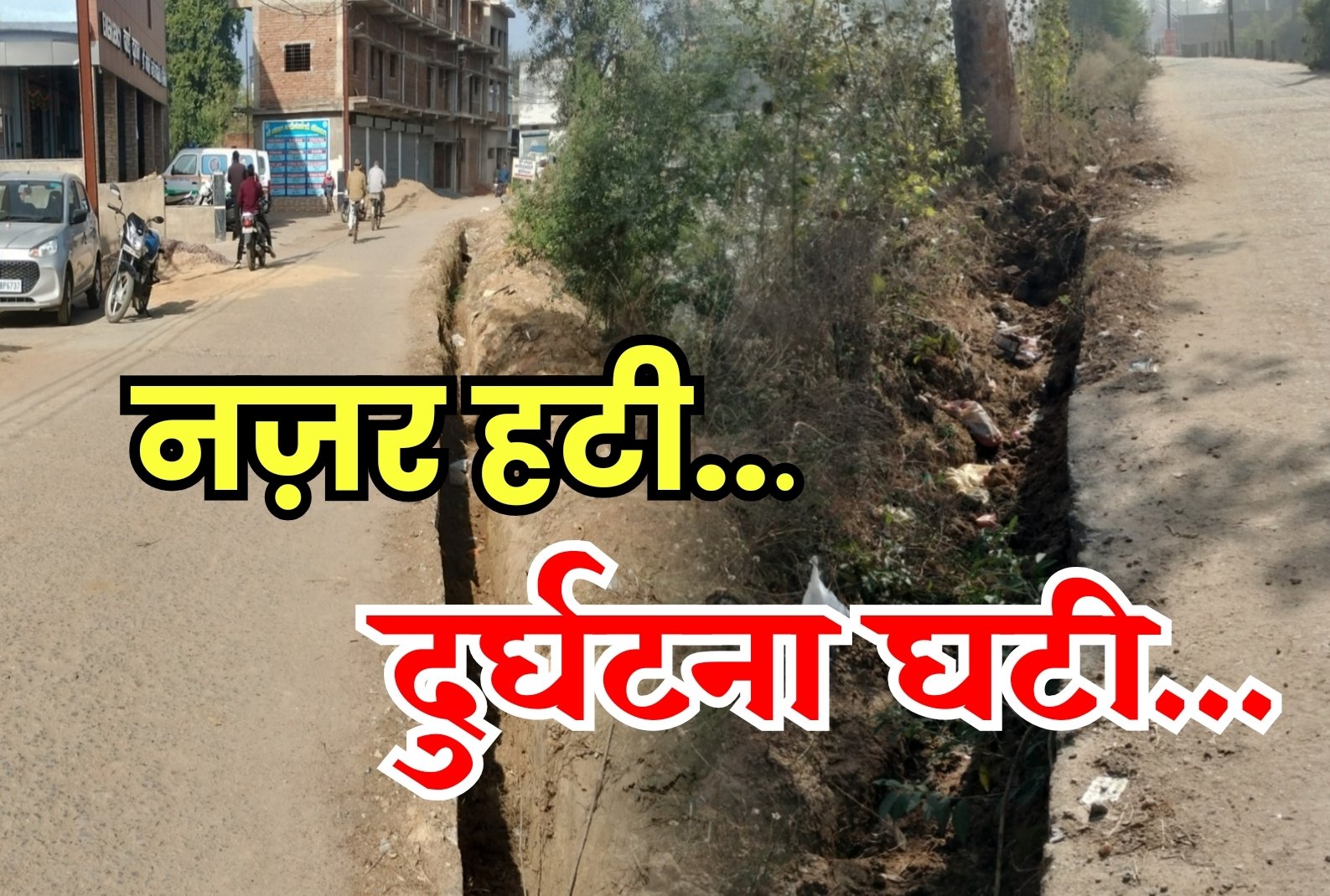 ktg news : नज़र हटी, दर्घटना घटी : सरगबंद तालाब किनारे खोदी गई नाली दे रहा दर्घटना को आमंत्रण.. स्कूली बच्चों व आम नागरिको के लिए बना खतरा.
