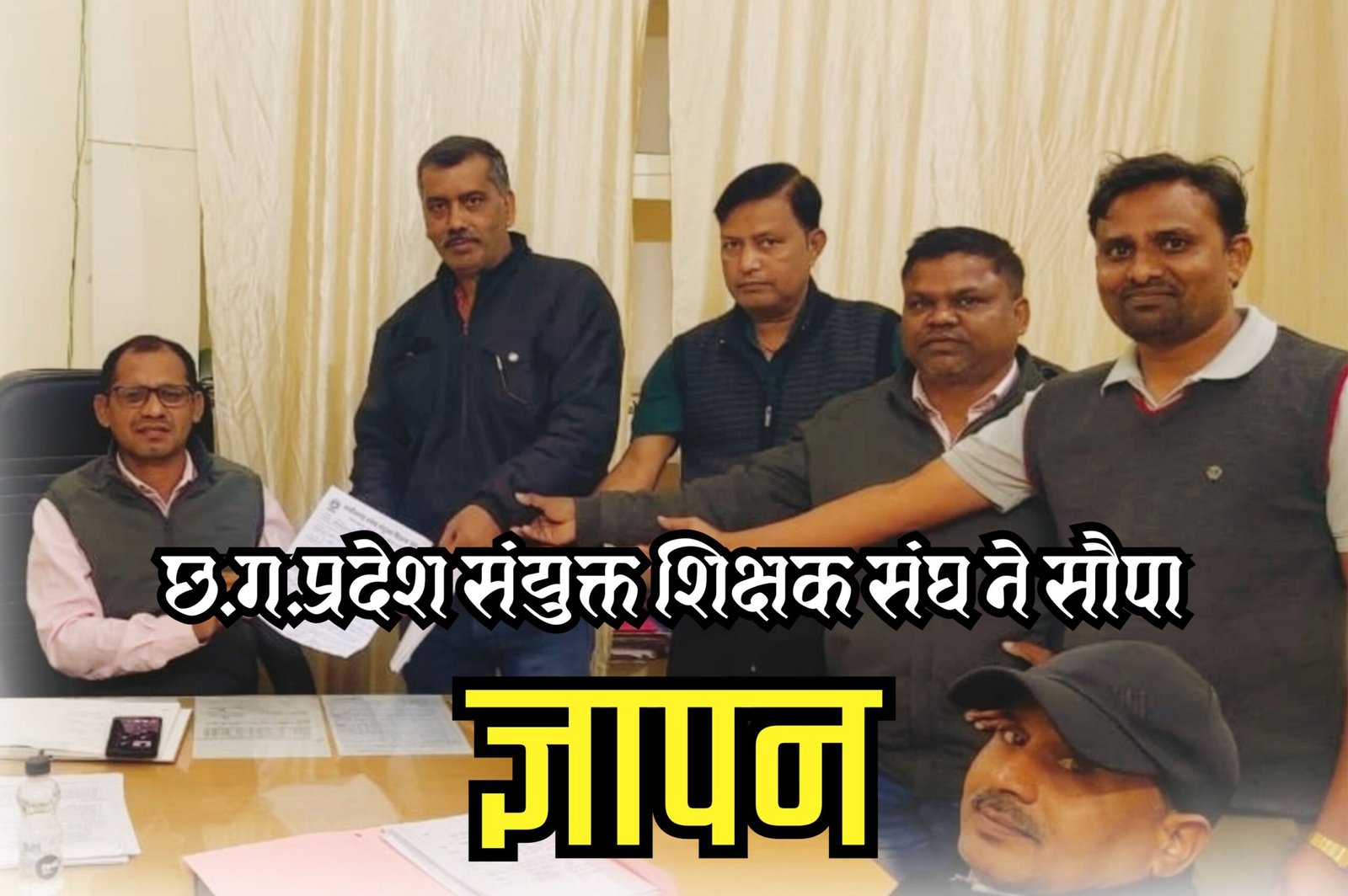 कोरबा/कटघोरा 2 जनवरी 2024 : 31 दिसम्बर 2024 दिन मंगलवार को छ.ग.प्रदेश संयुक्त शिक्षक संघ ब्लाक इकाई कटघोरा द्वारा विकास खंड शिक्षा अधिकारी अभिमन्यु टेकाम को शिक्षक हित मे शिक्षकों के विविध समस्याओं के समाधान हेतु ज्ञापन दिया। ज्ञापन में शिक्षकों के सर्विस बुक सत्यापन,GPF पास बुक संधारण एवं उनका सत्यापन ,अर्जित अवकाश आदि विषयों पर चर्चा की गई।