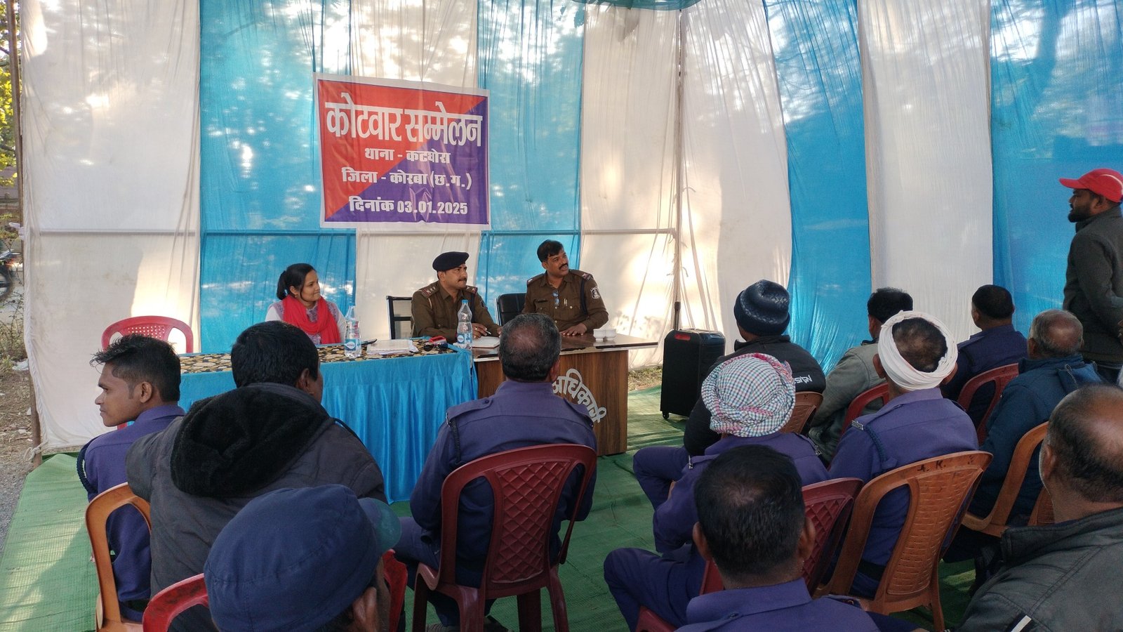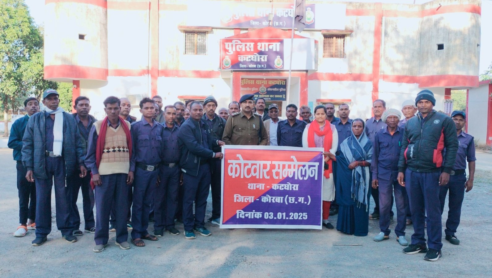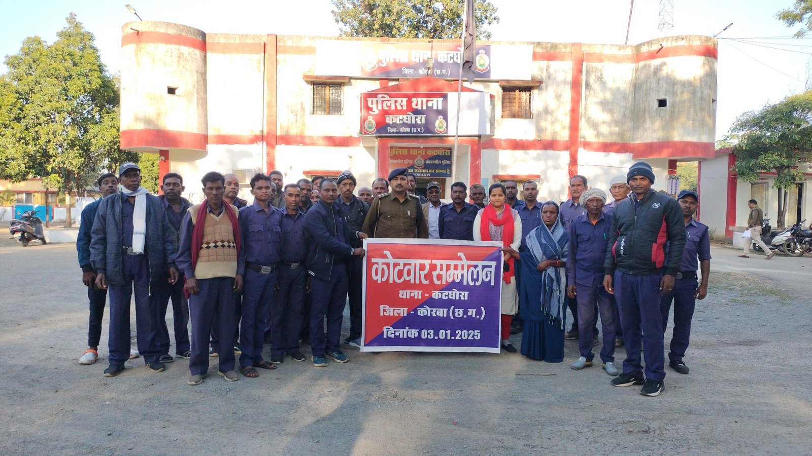 कोरबा/कटघोरा 3 जनवरी 2024 : आगामी नगरीय निकाय व त्रिस्तरीय पंचायत चुनाव को लेकर अभी निर्वाचन आयोग का कोई निर्धारित समय या कहें कि अभी कोई तिथि निर्धारित नही की गई है लेकिन कोरबा पुलिस अधीक्षक सिद्धार्थ तिवारी जिले में शांति पूर्ण चुनाव सम्पन्न कराने अभी से सभी थाना, चौकियों को निर्देश दिए है कि ग्राम कोटवारों का थाना स्तर पर सम्मेलन कराकर उनको चुनाव से पूर्व ग्राम पंचायतों में किसी भी आपराधिक गतिविधियों को लेकर अलर्ट रहने के लिए कहा है। इसी तारतम्य में कटघोरा थाना प्रभारी धर्मनारायण तिवारी के द्वारा थाना प्रांगण में आज नगरीय निकाय व त्रिस्तरीय पंचायत चुनाव को लेकर कटघोरा थाना क्षेत्र के समस्त ग्राम पंचायतों के कोटवारों का सम्मेलन आयोजित किया गया। इस दौरान कटघोरा की तहसीलदार प्रियंका चंद्रा प्रमुख रूप से उपस्थित रही।