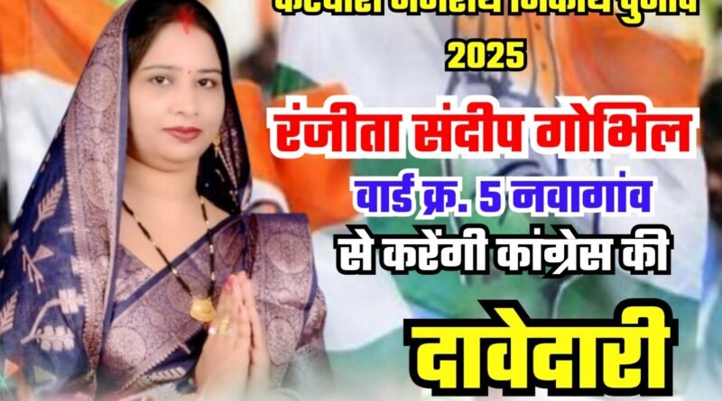 Nagariya nikay election : वार्ड क्र.5 नवागांव से रंजीता संदीप गोभिल करेंगी पार्षद की दावेदारी.. कांग्रेस से की टिकट की मांग.. वार्ड के विकास के लिए वचनबद्ध.