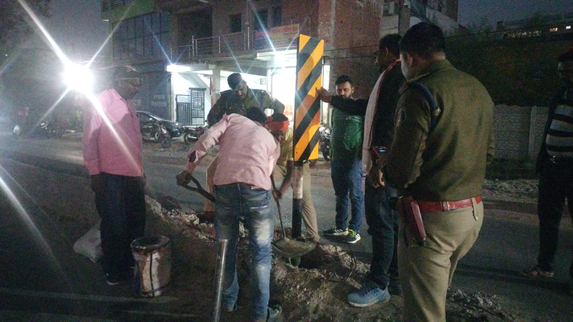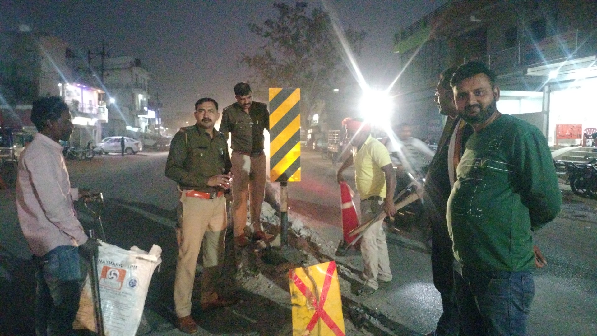 ktg news : PWD और नगर पालिका परिषद कुम्भकर्णीय नींद में.. दुर्घटनाजन्य क्षेत्र में पुलिस ने लगाया सांकेतिक बोर्ड.