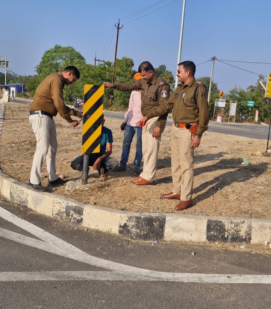 पुलिस अधिकारी धर्मनारायण तिवारी ने बताया कि व्यापक जनित से यह मामला जुड़ा हुआ है इसलिए हमने व्यक्तिगत रूप से इस तरफ ध्यान दिया। नगर में दुर्घटनाजन्य चार स्थानों पर पर्याप्त आकार के चेतावनी संबंधित बोर्ड लगाने की व्यवस्था कर दी गई है। वाहन चालकों को सचेत करने के लिए बोर्ड में सूचना के साथ-साथ रेडियम पट्टी भी लगाई गई है ताकि रात के अंधेरे में इसे स्पष्ट रूप से देखा जा सके। इससे पहले भी पुलिस की ओर से जनहित से जुड़े कुछ कार्यों को कराया गया है और यह बताने की कोशिश की गई है कि पोलिसिग और क्राइम कंट्रोल के अलावा और भी चीज हैं जो अपने संपर्क और संसाधन के माध्यम से की जा सकती हैं।