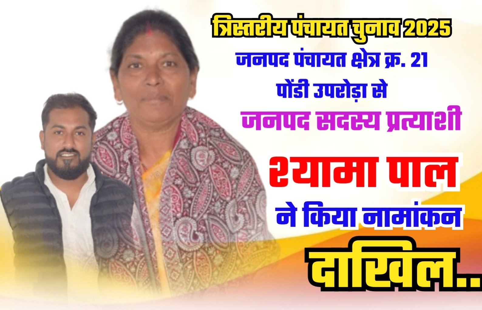 Rural election 2025 : युंका विधानसभा अध्यक्ष की माता श्रीमती श्यामा पाल का राजनिंति प्रवेश.. जनपद क्षेत्र क्र. 21 पोंडी उपरोड़ा से की जनपद सदस्य की दावेदारी.. वरिष्ठ कांग्रेसियों की उपस्थिति में नामांकन किया दाखिल.