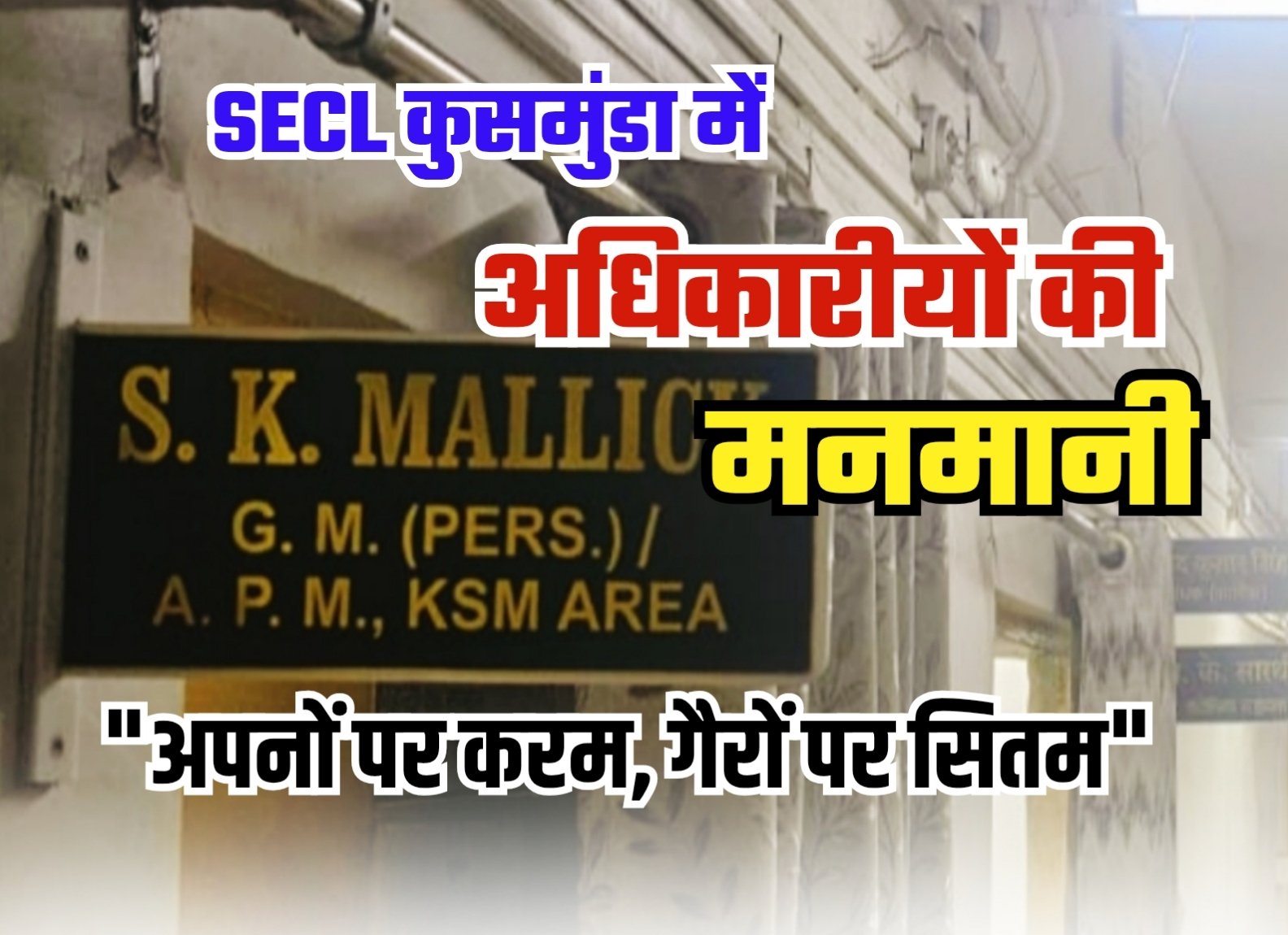 अपनों पर करम, गैरों पर सितम”, SECL कुसमुंडा एरिया में पर्सनल विभाग के अधिकारियों द्वारा पद का किया जा रहा दुरुपयोग,
