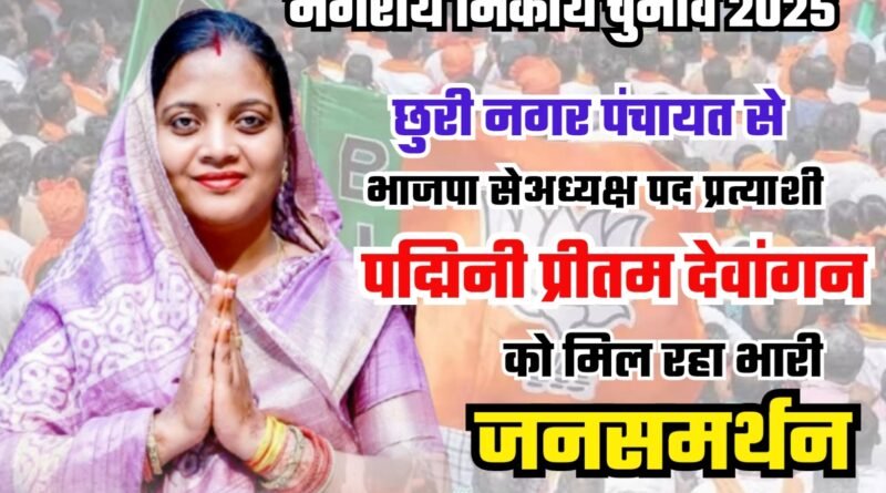 nagariy nikay chunav 2025 : छुरी नगर पंचायत में खिलेगा कमल.. BJP प्रत्याशी पद्मिनी प्रीतम देवांगन का सघन जनसंपर्क..10 वर्षों से विकास को तरस रही जनता का मिल रहा भारी जनसमर्थन.