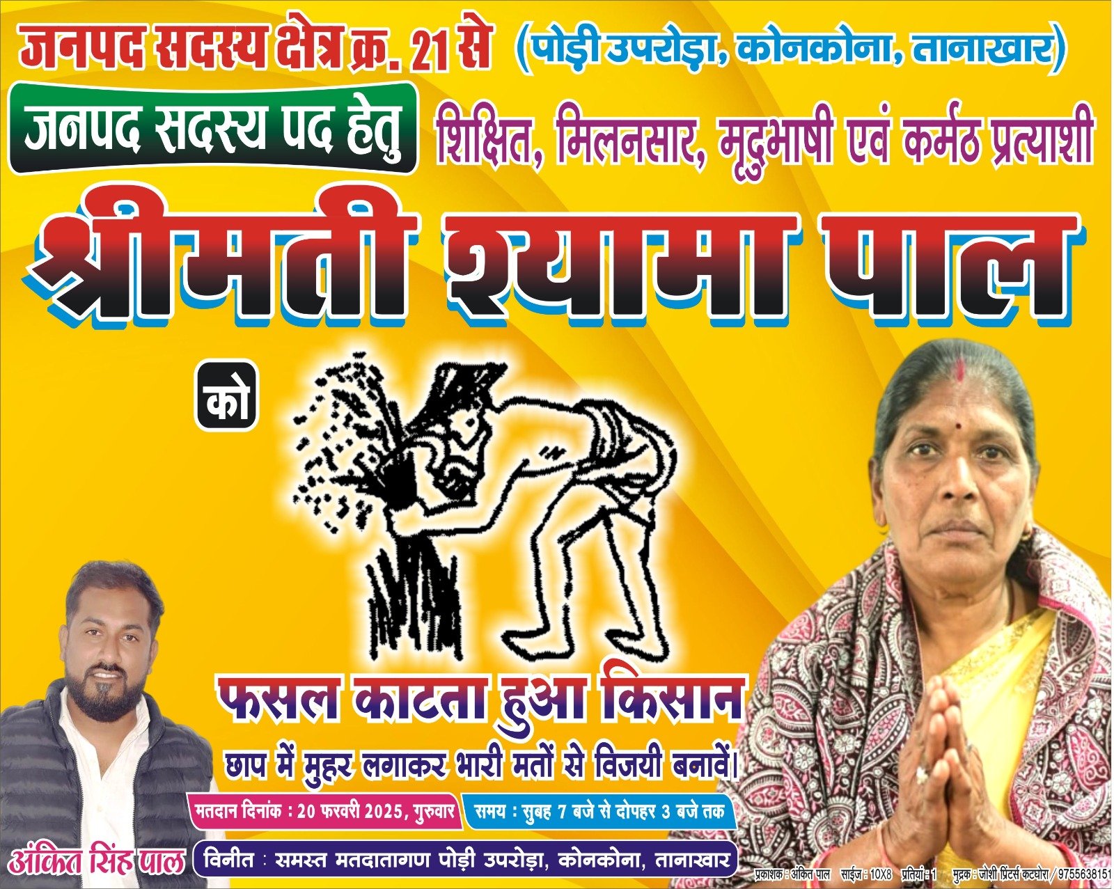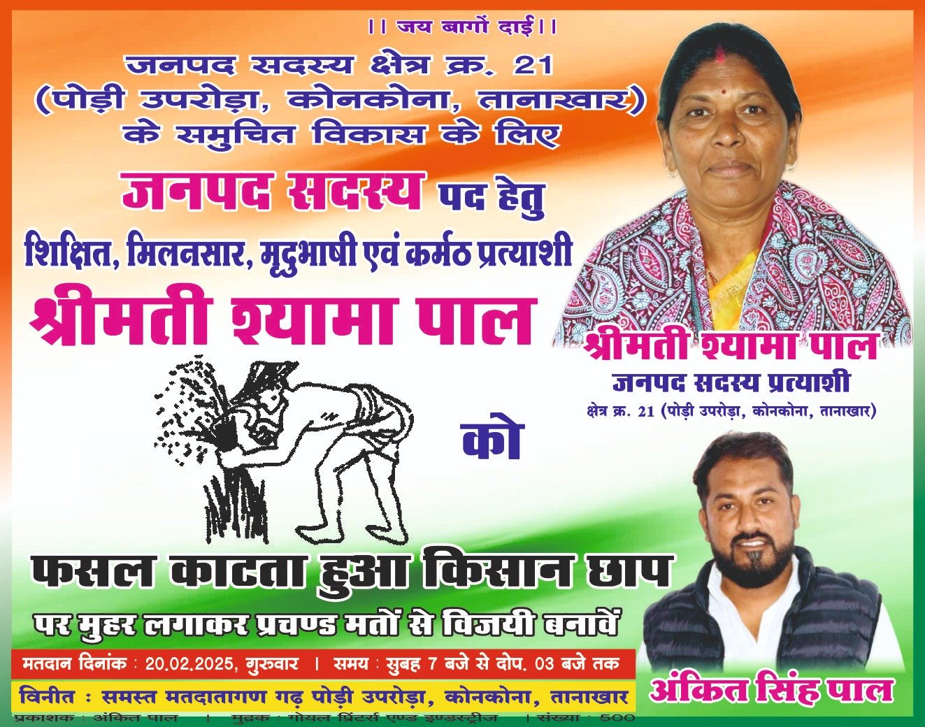प्रत्याशी श्यामा पाल मानती है कि उनका पुत्र अंकीत पाल का पंचायती कामकाजी अनुभव और लोगों के बीच मजबूत विश्वास ही उन्हें जीत दिलाएंगा । ऐसे में ग्रामीणों के बीच उनकी स्वच्छ छवि को लेकर आगामी चुनाव में अपनी जीत के प्रति पूरी तरह से आश्वास्त करती है। अंकित पाल ने जनता को सरकारी योजनाओं का लाभ दिलाया। उन्होंने अपने युवक कांग्रेस पाली तानाखार विधानसभा अध्यक्ष रहने के दौरान बिना भेदभाव व पारदर्शिता रूप से काम किया। ग्रामीण जनता भी उनके कार्यो से संतुष्ट रहे और यही वजह है कि वर्तमान चुनाव में जनपद पंचायत सदस्य प्रत्याशी इनकी माता श्यामा पाल की जीत को लेकर गांव की जनता का पूरा- पूरा समर्थन मिल रहा है।
