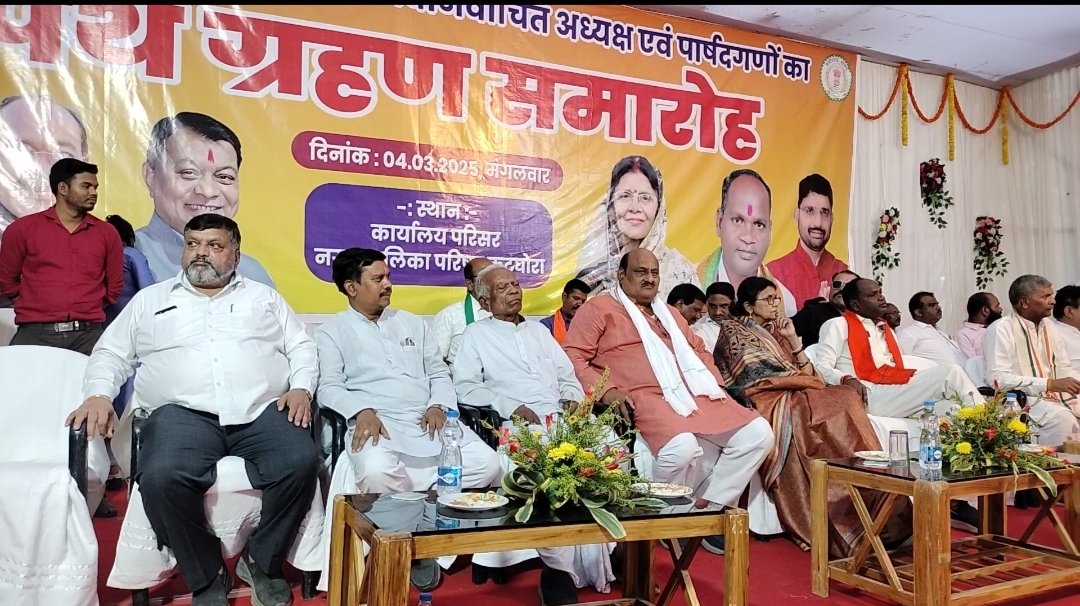 कोरबा/कटघोरा 4 मार्च 2025 : कोरबा जिले के 6 नगरीय निकायों में 5 भारतीय जनता पार्टी ने अपना कब्जा किया तो वही कटघोरा नगर पालिका में कांग्रेस पार्टी ने दबदबा कायम रखते हुए पुनः अध्यक्ष समेत 9 पार्षदों ने चुनाव में जीत हासिल की। जिले के 5 नगरीय निकायों का 2 मार्च रविवार को शपथ ग्रहण समारोह सम्पन हुआ। आज 4 मार्च को कटघोरा नगर पालिका परिषद शपथ ग्रहण समारोह नगर पालिका परिषद कार्यालय के कैम्पस में सम्पन्न हुआ। जहां नवनिर्वाचित अध्यक्ष राज जायसवाल ने 15 वार्डों के पार्षद राजेश्वरी जात्रा, हरीश यादव, किशोर दिवाकर, राजू दीवान, मधुलता जायसवाल, पवन अग्रवाल, संतोषी कंवर, लालबाबू ठाकुर, संजय अग्रवाल, सुनीता जायसवाल, निसार अहमद, लक्ष्मी खैरवार, शिवमती पटेल ( नीतू ), रमेश पटेल, अजय गर्ग ने कोरबा लोकसभा सांसद ज्योसना चरणदास महंत के साथ कटघोरा विधायक प्रेमचन्द पटेल, पूर्व मंत्री जयसिंह अग्रवाल के मुख्य आतिथ्य में शपथ ग्रहण किया।