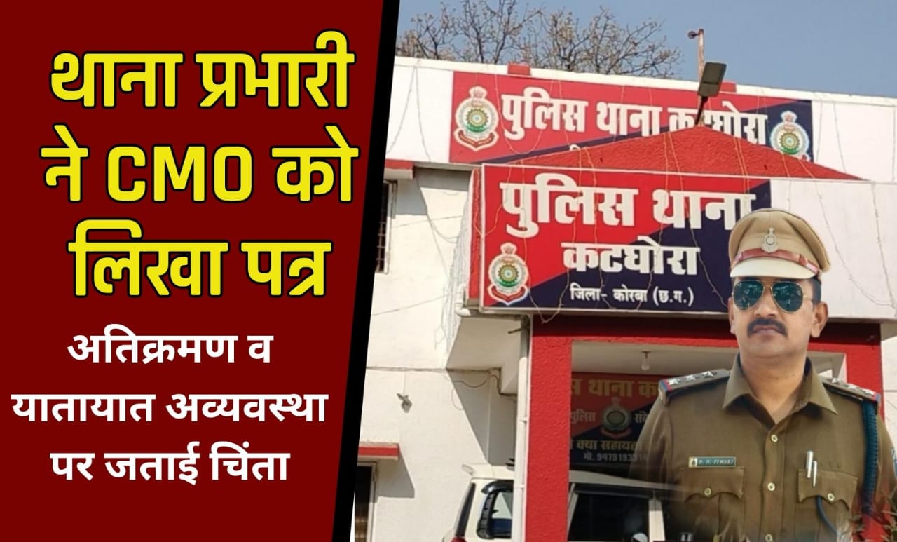 कोरबा/कटघोरा 17 अप्रेल 2025 : शहर में सड़कों और चौराहों पर दिन-ब-दिन बढ़ते अवैध अतिक्रमण और इससे उत्पन्न हो रही यातायात अव्यवस्था को लेकर कटघोरा थाना प्रभारी धर्मनारायण तिवारी ने नगर पालिका परिषद के मुख्य नगर पालिका अधिकारी (CMO) को एक महत्वपूर्ण पत्र लिखा है। इस पत्र के माध्यम से उन्होंने नगर में व्याप्त अराजक स्थिति की ओर ध्यान आकर्षित करते हुए त्वरित कार्रवाई की मांग की है।