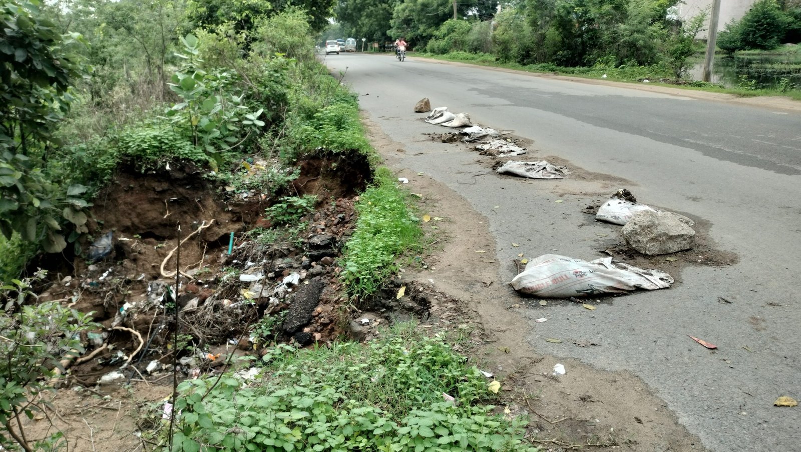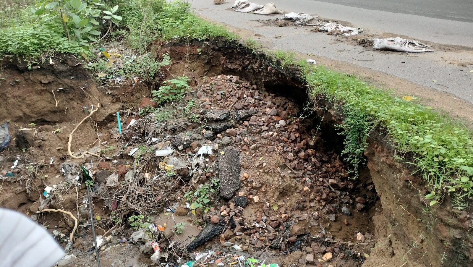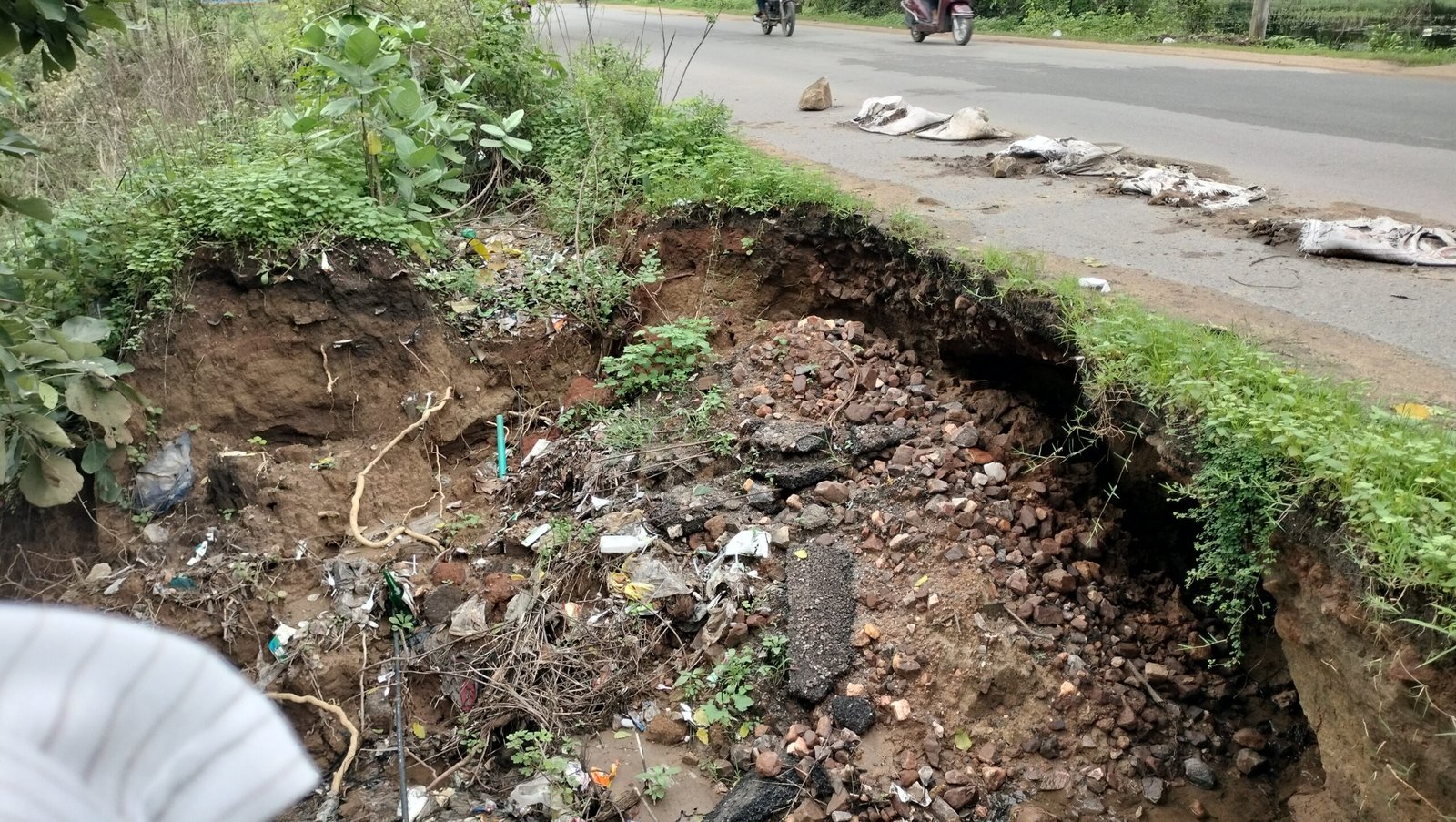 बारिश के कारण सड़क के नीचे की मिट्टी इतनी हद तक धँस गई है कि सड़क की सतह अब पूरी तरह से खोखली हो चुकी है। सड़क के भीतर से बहता पानी रिसते हुए नीचे की ओर बह रहा है, जिससे अंदेशा जताया जा रहा है कि सड़क कभी भी जमीन में धंस सकती है। इस परिस्थिति में बड़े हादसे से इंकार नहीं किया जा सकता।
