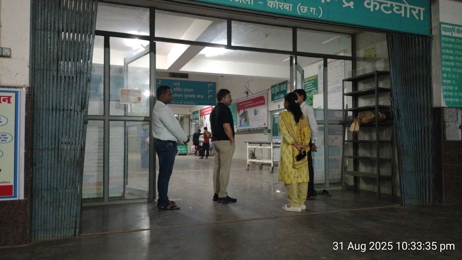 कटघोरा/कोरबा, 1 सितंबर 2025: कटघोरा सामुदायिक स्वास्थ्य केंद्र (CHC) में बीती रात उस समय हंगामा खड़ा हो गया जब सर्पदंश की शिकार एक महिला को इलाज के लिए अस्पताल लाया गया, लेकिन मौके पर एक भी डॉक्टर मौजूद नहीं था। गंभीर हालत में तड़पती महिला को करीब एक घंटे तक डॉक्टर का इंतज़ार करना पड़ा। इस दौरान परिजन और मोहल्ले के लोग अस्पताल प्रबंधन पर लापरवाही का आरोप लगाते हुए जमकर हंगामा करने लगे।