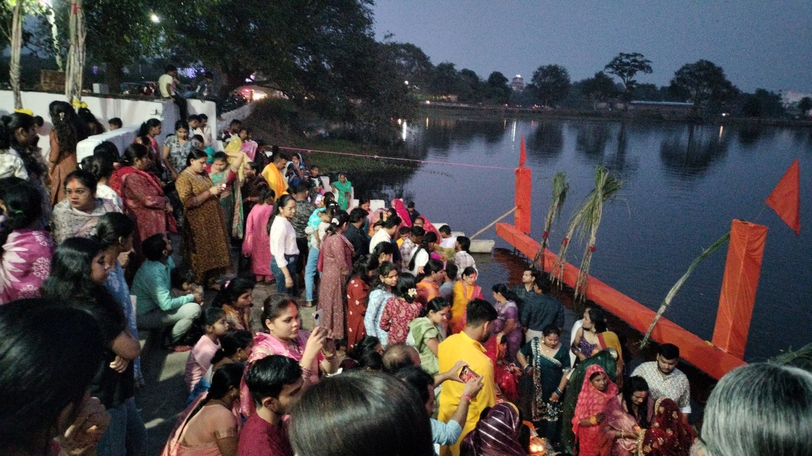 कटघोरा के प्रसिद्ध राधा सागर घाट पर सुबह से ही पूजा की तैयारियां शुरू हो गई थीं। शाम होते-होते घाट भक्ति गीतों, ढोल-मंजीरों और पारंपरिक छठ गीतों की सुरधारा से गुंजायमान हो उठा। छठी मइया के जयकारों के साथ श्रद्धालु महिलाएं सूप, फल, पंचमेवा और प्रसाद से भरे डाले लेकर सूर्य देव को अर्घ्य देने पहुंचीं। यहां पूर्वांचल समुदाय के साथ-साथ स्थानीय लोगों की भी भारी भागीदारी देखने को मिली। बच्चे, युवा और वृद्ध—सभी श्रृद्धा और भक्ति में डूबे नजर आए।